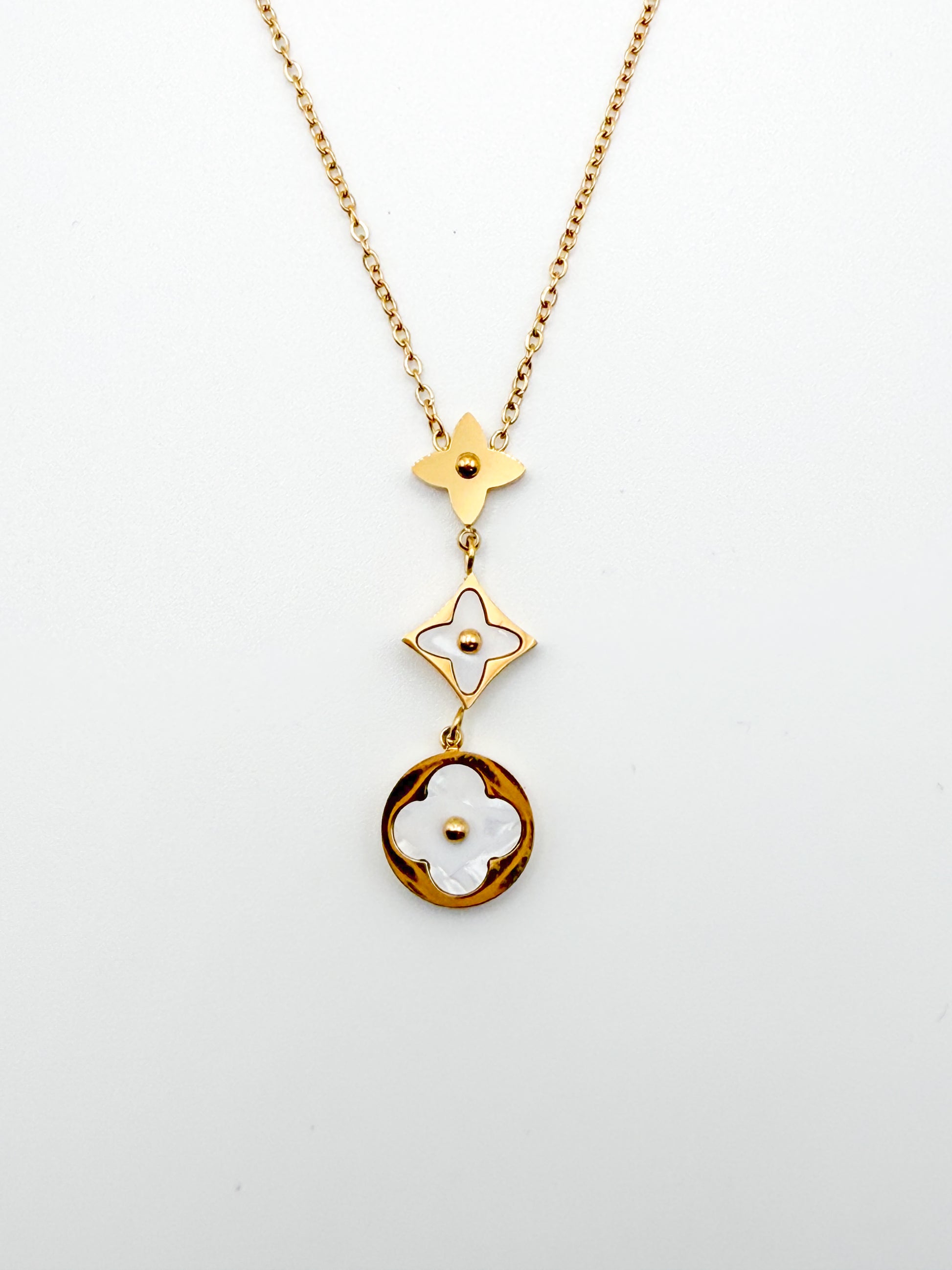 A delicate blend of elegance and charm, our Petal & Star Necklace is designed to bring a soft, feminine glow to your everyday style. Featuring three signature motifs – the petal, the star, and the iconic rounded clover – this piece adds a beautiful layered look in one effortless necklace.