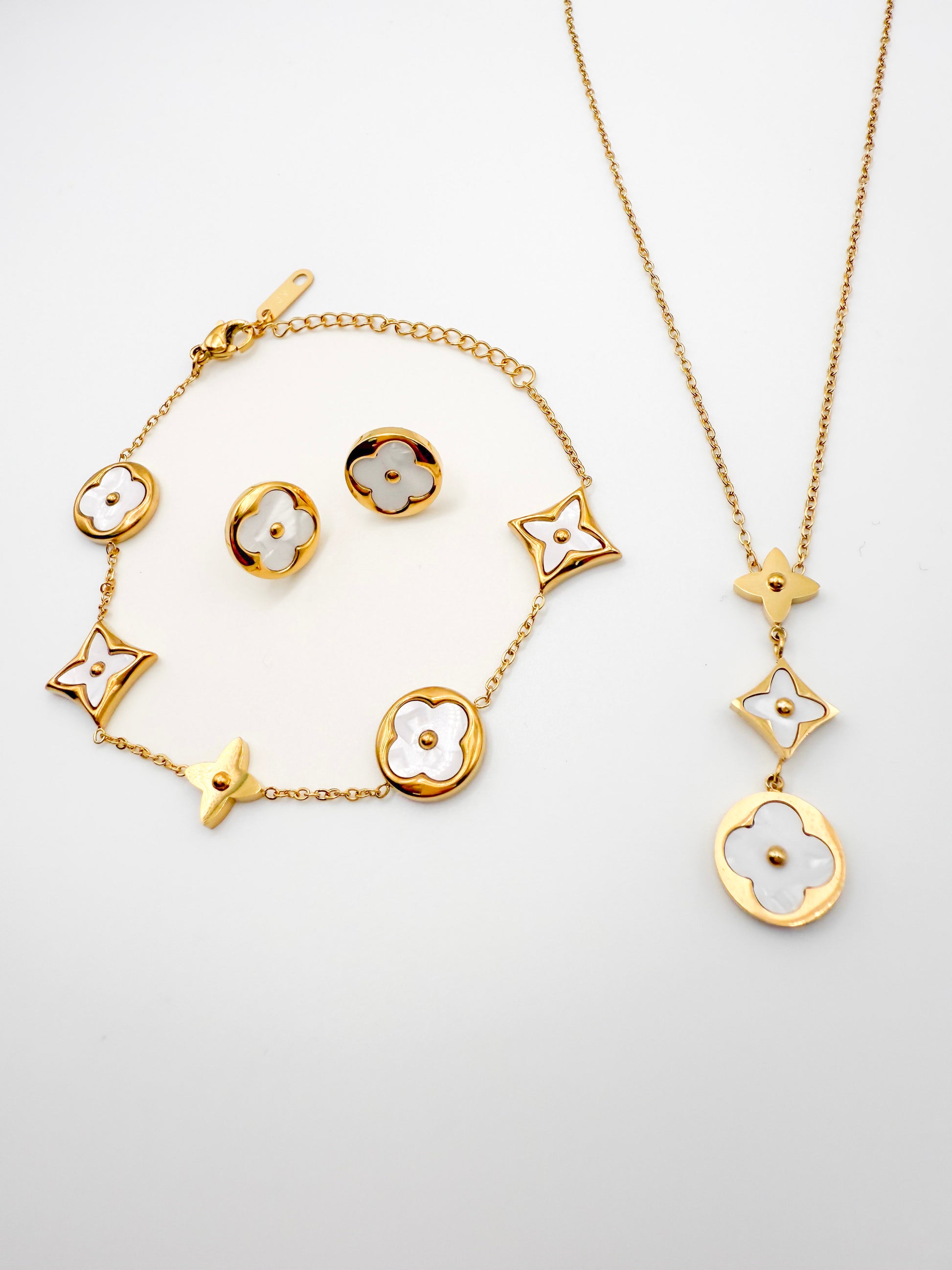Crafted with 18k gold-plated, water-resistant stainless steel, these studs pair beautifully with our matching Petal & Star Bracelet and Petal & Star Necklace for a complete, effortless set.