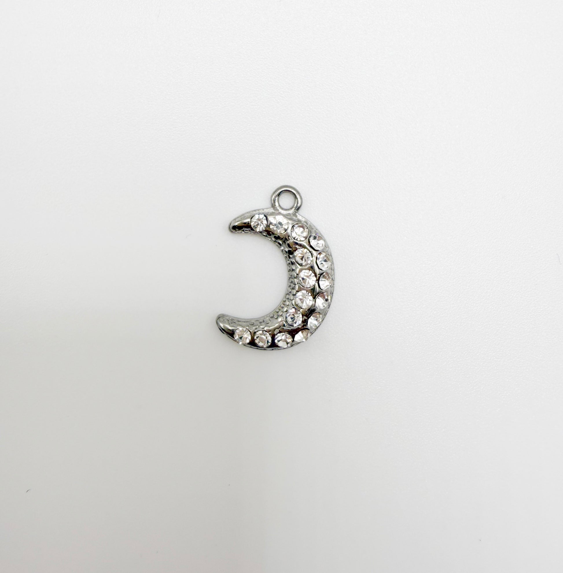 Drenched in light-catching crystals and finished in your choice of 18k gold plating or classic stainless steel, this charm brings effortless glow to any necklace or bracelet. Its textured crescent design adds depth and dimension, making it a standout piece in any charm story.