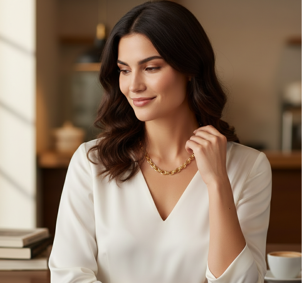 Finished with a premium PVD coating and 18k gold plating, our jewellery is designed to stay golden, resist fading, and keep its shine — even with everyday wear.