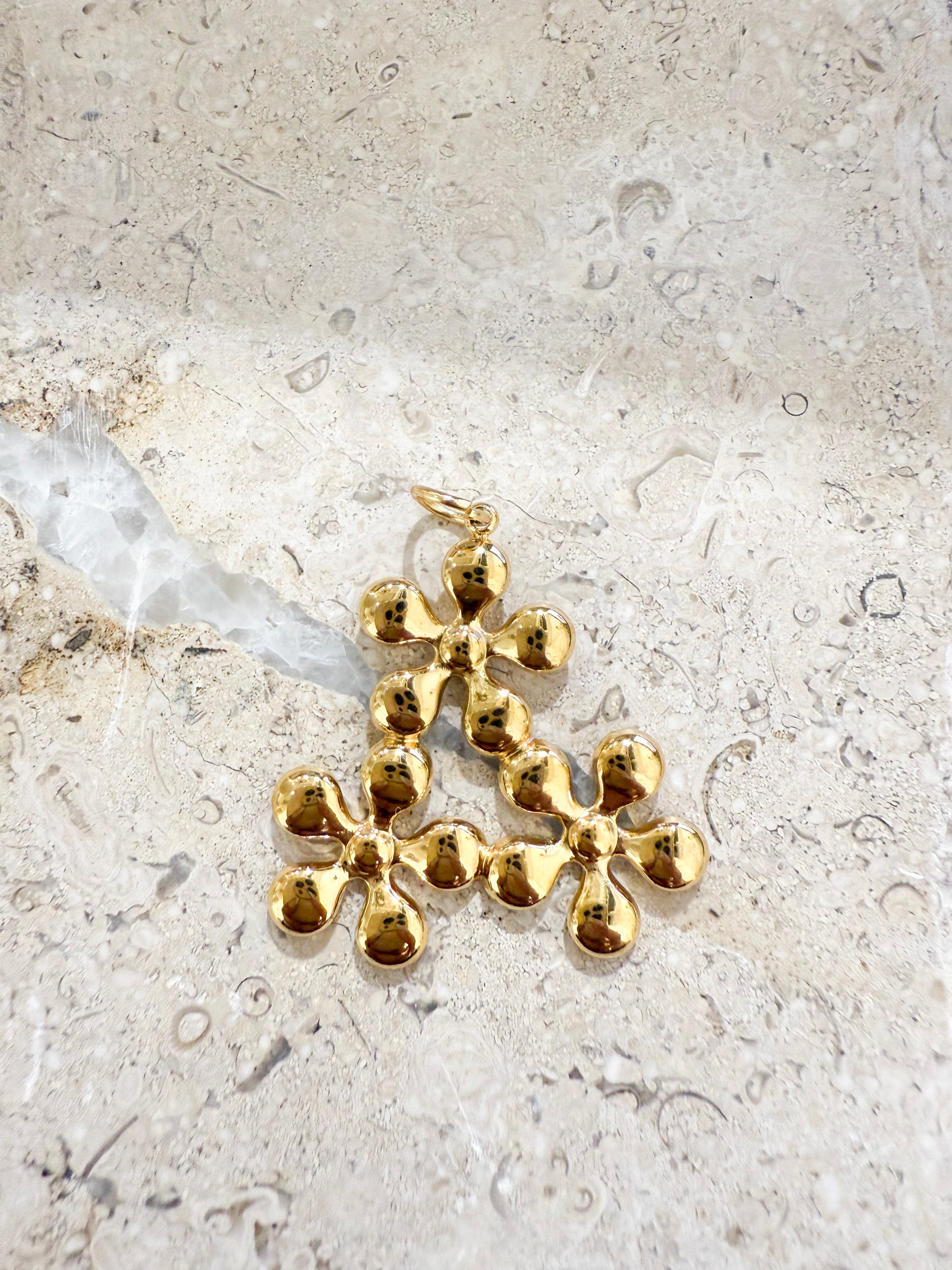 Crafted from 18k gold-plated stainless steel, this charm features three polished flowers connected in a striking arrangement, creating depth, movement, and playful elegance.